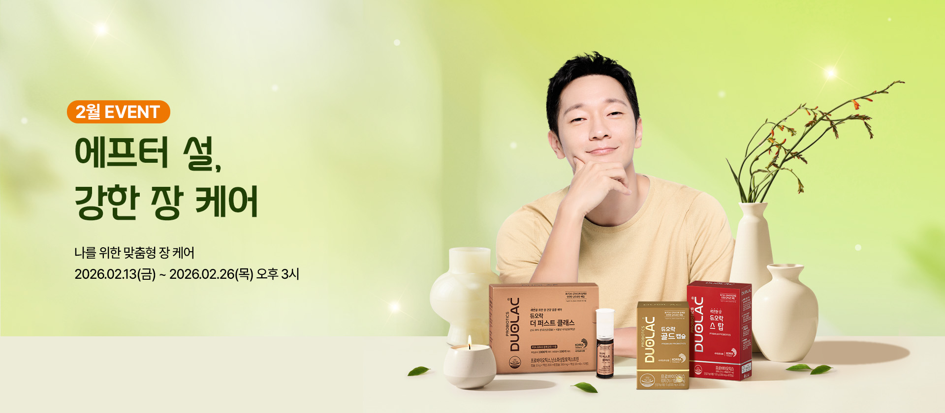 안녕하세요. 장 속까지 강력한 생존력, 강한 유산균 듀오락입니다. 듀오락을 선택해 주시고, 늘 변함없이 함께해 주셔서 진심으로 감사드립니다. 앞으로도 고객님께서 안심하고 드실 수 있도록 품질과 연구, 서비스 모든 과정에 더욱 정성과 책임을 담겠습니다. 저희 듀오락은 고객님의 일상 속 장 건강을 꾸준히 함께 관리하는 파트너가 되겠습니다. 환절기 건강 유의하시고, 포근한 2월 보내시기 바랍니다. 감사합니다.